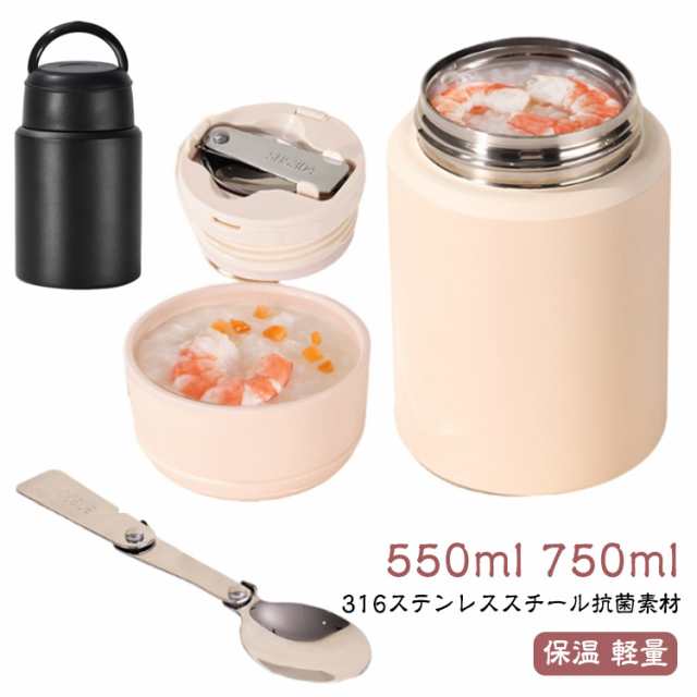 折りたたみスプーン付き ステンレススープジャー スープジャー お弁当 あったか 750ml ランチ スプーン付き 550ml 保温 お手入れ簡単 スープジャー ステンレス 保温 軽量 コンパクト おしゃれ かわいい 本体丸洗い スープ