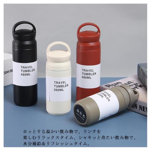| 便利な持ち手付きのステンレスボトル。 真空断熱二重構造により保温・保冷ができるのでどこでも美味しい温度を愉しめます。 500mlと使い勝手のいいサイズ感に軽量設計で持ち運びも楽々。 ボトル本体は錆びにくく耐久性に優れた304ステンレスを採用。カラータイプの表面には、傷がつきにくいようコーティングを施しています。 広口で大きな氷もラクラク入る。 飲み口は取り外して洗えるので、お手入れが簡単で、しっかり洗えて衛生的です。 ホッとする温かい飲み物で、ランチを楽しむリラックスタイム、シャキッと冷たい飲み物で、水分補給&リフレッシュタイム。 | |