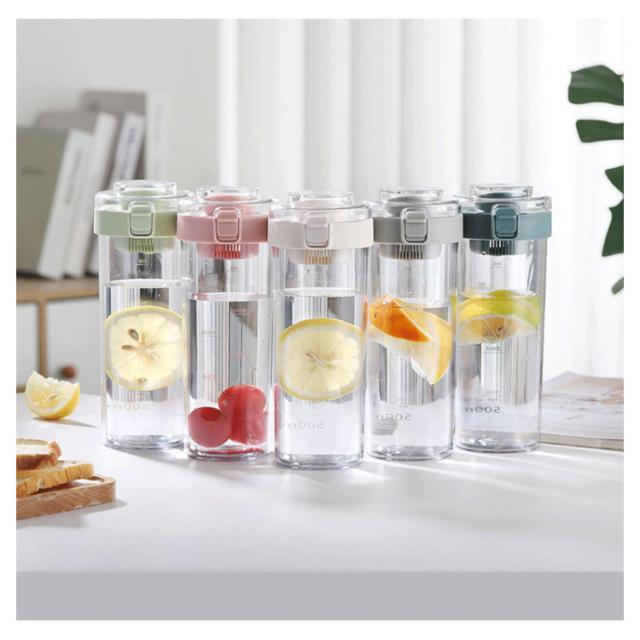 蓋つき 500ml ウォーターボトル 直飲み水筒 茶こし付き 360ml ウォーターボトル 洗いやすい クリアボトル ウォーターボトル 耐冷耐熱 目盛り付き 500ml ワンタッチオープン ボトル 通勤 オフィス 高い密封性 軽量