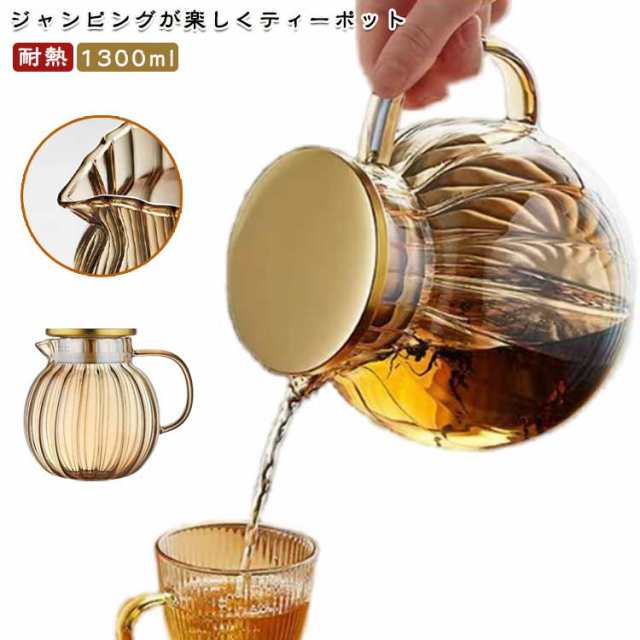 1300ml おしゃれ ティーポット カボチャデザイン 耐熱 カボチャデザイン 急須 ティーポット 大容量 ガラス ガラス製ポット 直火 直火対応 ピッチャー 紅茶 フルーツティー リーフティー 花茶 工芸茶 ハーフティー 注ぎやすい 洗いやすい 可愛い ギフト プレゼント
