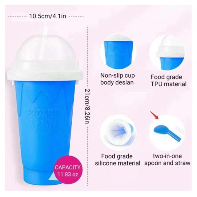 スクイーズカップ 電気不要 かき氷機 手作り フローズン器 スラッシュシェイクメーカー シャーベット カップ 蓋 スブーン ストロー付き 保冷 スラッシーメーカー シェイクメーカー 子供 スクイーズだけ 手動 ヨーグルト フルーツ 冷却カップ シャーベット 家庭用