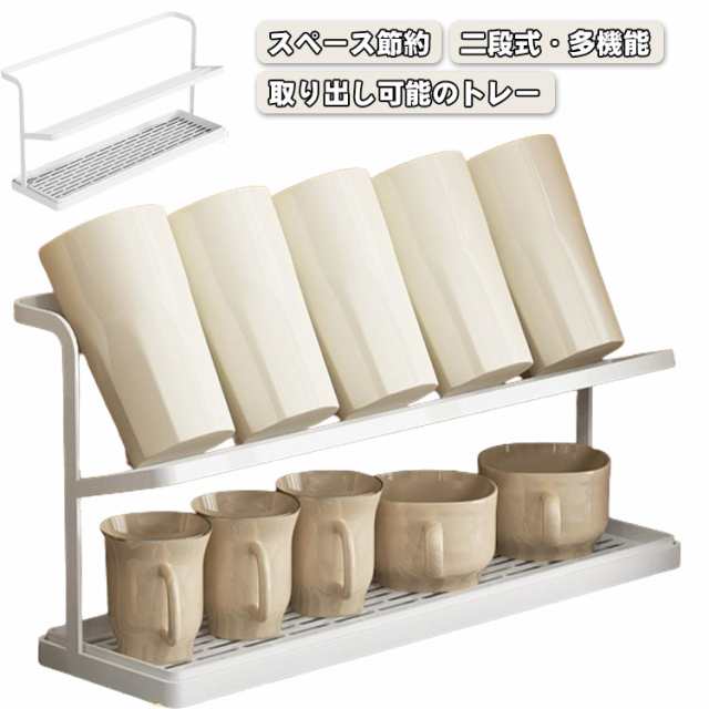 コップスタンド ワイド 水切りラック 2段式 食器 ボトルスタンド 水筒スタンド 水が流れるトレー シンプル キッチン 水切りかご ジャグボトルスタンド ガラス収納ラック 収納ラック カップホルダー