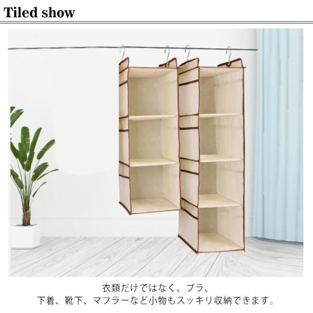 吊り下げ収納 ズボン 収納 吊り下げボックス 小物収納 クローゼット 靴下 2個セット サイドポケット 3段/4段 下着 衣類収納ラック 荷重 省スペース 整理 片付け 吊り下げラック