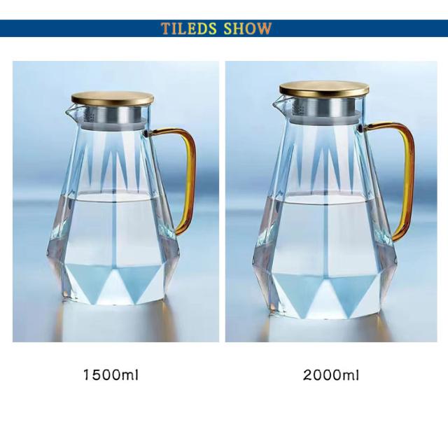 耐熱ガラス 直火可 ガラスピッチャー ガラスポット 1500ml 紅茶 ガラスピッチャー 耐熱 花茶 冷水筒 ティーポット コーヒーサーバー 持ち手 ガラス急須 緑茶 フルーツティー 蓋付き 2000ml 麦茶 おしゃれ お茶 北欧 ダイヤモンド ギフト