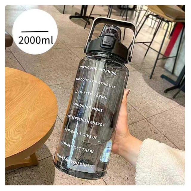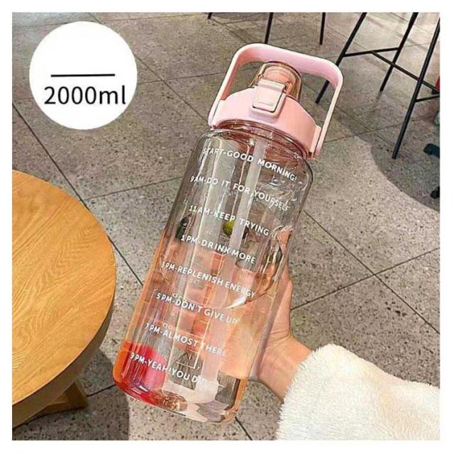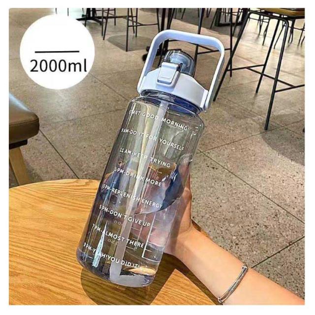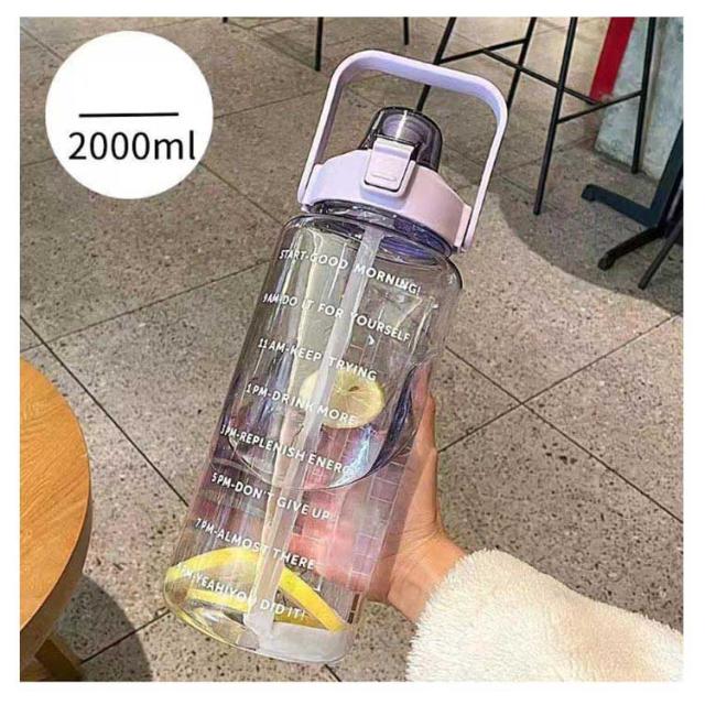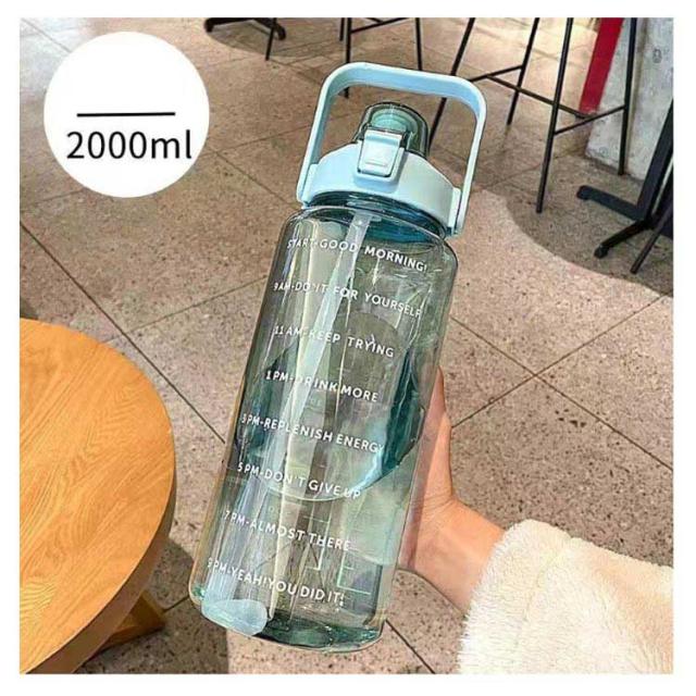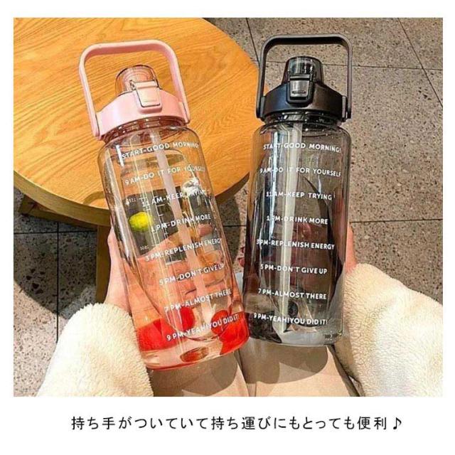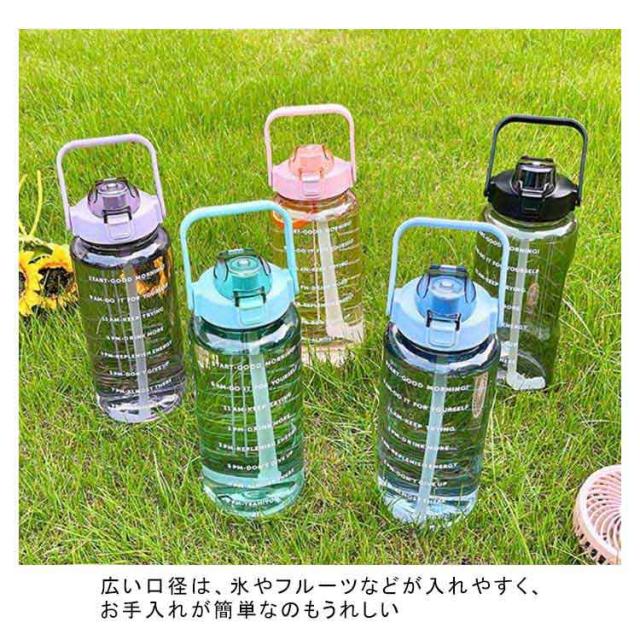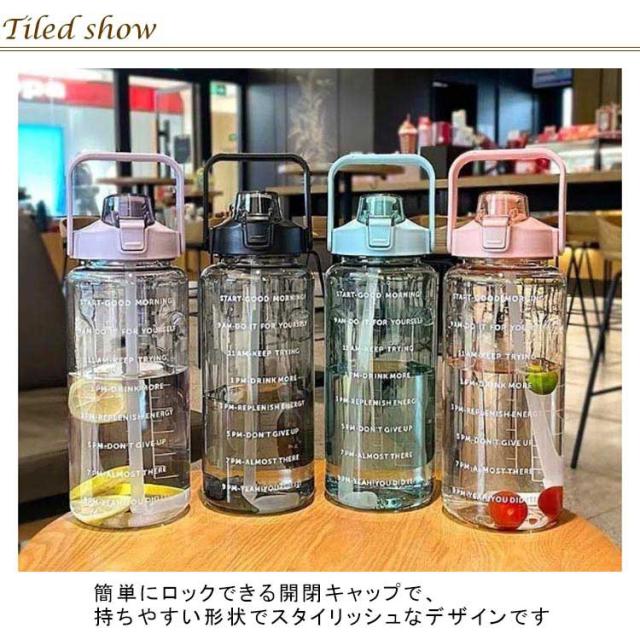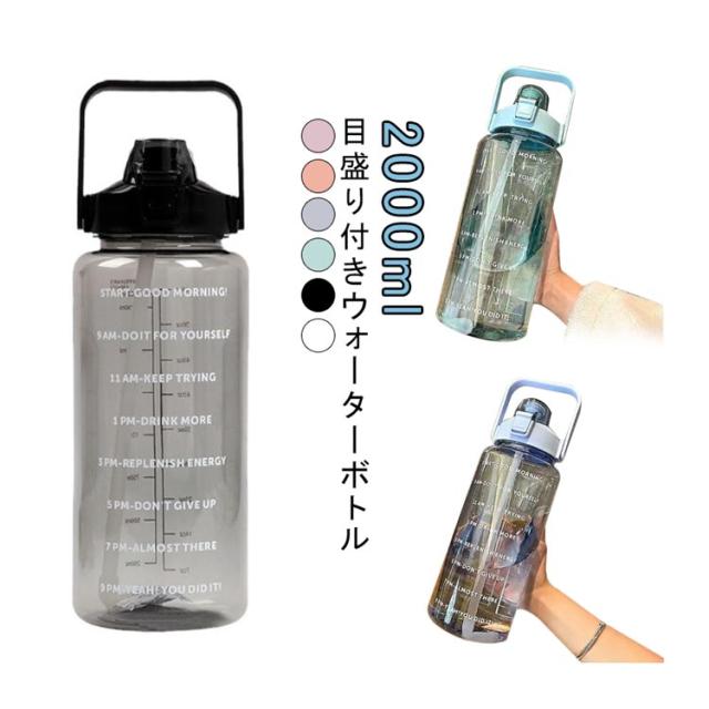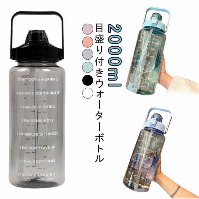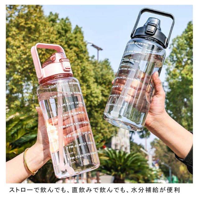 水筒 2L 目盛り 室内 運動 キッズ 漏れ防止 ジム スポーツ 直飲み 大容量 おしゃれ スポーツボトル ウォーターボトル タイムマーカー ストロー付き ヨガ 水筒 2リットル トレーニング スムージー シェイカー 夏 スポーツ水筒 便利 夏用 耐熱