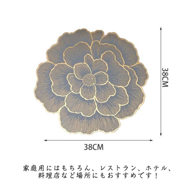 ランチマット お花モチーフ マット 2枚セット 北欧風 テーブルマット 金色 おしゃれ 洗える 結婚式用ランチョンマット 傷防止 ランチョン テーブルクロス 水洗い可 食卓 汚れ防止 撥水 敷物 熱遮断 滑り止め パーティー レストラン用