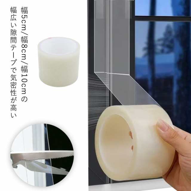 | 幅5cm/幅8cm/幅10cmの幅広い隙間テープで気密性が高い。 【すきま風対策&冷暖房を効率的に】窓防寒対策テープは窓からの隙間風が気になる玄関、窓のサッシ、ガラス戸、ドアの下部にご利用いただけます。貼るだけで隙間からの花粉、ホコリ、小虫、蚊などの侵入をしっかりブロックします。その上、隙間テープを貼ることで外からの空気を防ぎ屋根や床、壁、窓から冷気や暖気を逃さず、部屋の温度を保つことができます。お部屋の温度が保たれることによって、室内の冷暖房効率をグーンとアップして、電気代の節約にもなります。 【透明でインテリアに損なわない】透明のすき間風防止テープで、目立ちにくいので美観を損ねる心配がないのもいいと思います。 【粘着力よく、跡が残らない】高品質隙間テープは強い引き裂き性、耐久性、耐水性、耐熱性の特徴があります。粘着性は高くて、長持ちできます。剥がした跡が残りにくい素材を使用しているため、繰り返し剥がしてものりが残らないです。 【自由にカット&使用便利】結露抑制粘着テープのサイズは自由にカットできますし、貼りやすくてあっという間に綺麗になります。特別な工具を使う必要もなく、適切な長さをカットしてから、お貼りたいところに貼ってしっかり押すとOKです。カーブ、凹凸のある場所でもピッタリと貼れます。取り外すこともとても簡単で、違和感などはございませんです。 | |
