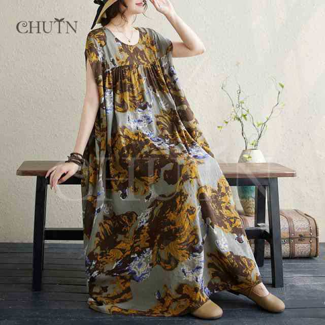 ※ご注意:この商品は平置きサイズです。ウエスト:上端の左右幅を二倍した長さ出ございます。ヒップ:ウエストから18cmしたの部分を中心にした幅の二倍の値です。素人採寸ですので、若干の誤差がございます、ご了承ください。※ご注意:この商品(着丈と肩幅)は平置きサイズです。着丈:後ろ襟ぐりの中心から裾まで(襟の高さを含まず計測)ウエスト:上端の左右幅を二倍した長さ出ございます。素人採寸ですので、若干の誤差がございます、ご了承ください。写真はイメージ画像となっておりますので形や色味が多少異なることがございます、あかじめご了承くださいませ。※商品に不良があった場合は、商品到着から7日以内にご連絡いただければご返金・交換対応させて頂きます。※機械による生産のため、生地の継ぎ目の若干のズレや多少のほつれなど、形やサイズに多少の誤差が生じる場合や他繊維が混紡している場合もございますが、品質上の問題はございませんので、予めご理解下さいますようお願い致します。※商品によって素材の性質上、製造過程において染料などの特有の匂いが多少強く感じられるものもございますが、数日のご使用や陰干しなどで、ほとんど匂いは感じられなくなりますので、ご安心ください。※ご注文の商品はをキャンセルしましたら、ご入荷の手数料金はお客様が負担になります。※すべて平置きサイズです。(採寸方法違いより、多少の誤差がございますので、ご了承ください。)※海外輸入品のため、商品のデザイン仕様が予告なく変更になる場合がございます。交換/返品対象外になりますので、ご了承下さい。※製品にメーカータグ、洗濯表示、サイズタグ等が無い場合がございます。また、フリーサイズ商品にサイズ表記タグが付いている場合がございますが、サイズとは関係ございません。※商品を平置きし、メジャーにて手作業による採寸をしております。若干の誤差が生じる場合がございます。サイズ等でご不明な点はお気軽にお問い合わせくださいませ。※商品の特性上、柄の色味など画像と多少異なる場合がございます。また、柄が縫い合わせ部分で必ずしも合っていないことがございます。※生地のカッティングにより画像と異なる場合がございます。同商品、同色におきましても色(染料)やロットによって伸縮性・伸び率が異なる場合がございます。 また、生地を織る際に糸の継ぎ目や多少のほつれ等が生じる場合がございますが品質上の問題はございませんので何卒ご了承くださいませ。※プリントは永久的なものではなく、もまれたり擦られたりすると色落ちしやすく、また、水洗いやクリーニングを繰り返すことにより多少薄くなります。またプリント部分へのアイロンはお避け下さいませ。夏ワンピースレディース40代50代 ゆるワンピース涼感 ゆったり花柄 ワンピースロング 夏 半袖 プリントワンピース60代 ママ服 着痩せ おしゃれ カジュアル