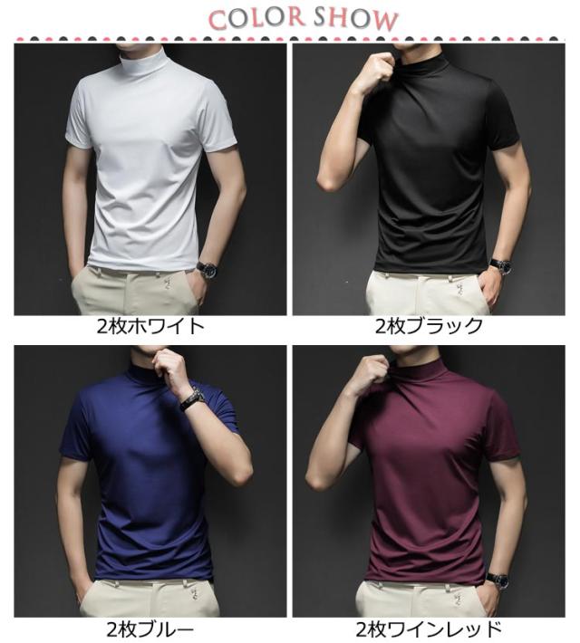 ゴルフtシャツ メンズ Tシャツ ゴルフシャツ 2枚 ゴルフ 半袖 モックネックシャツ ハイネック 半袖 メンズ ゴルフ メンズ シャツ メンズtシャツ ゴルフウェア モックネック ストレッチ 無地 カジュアル ハイネックtシャツ トップス カットソー スポーツウェア