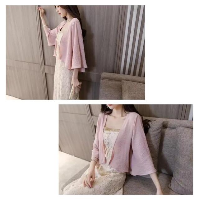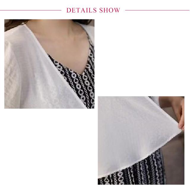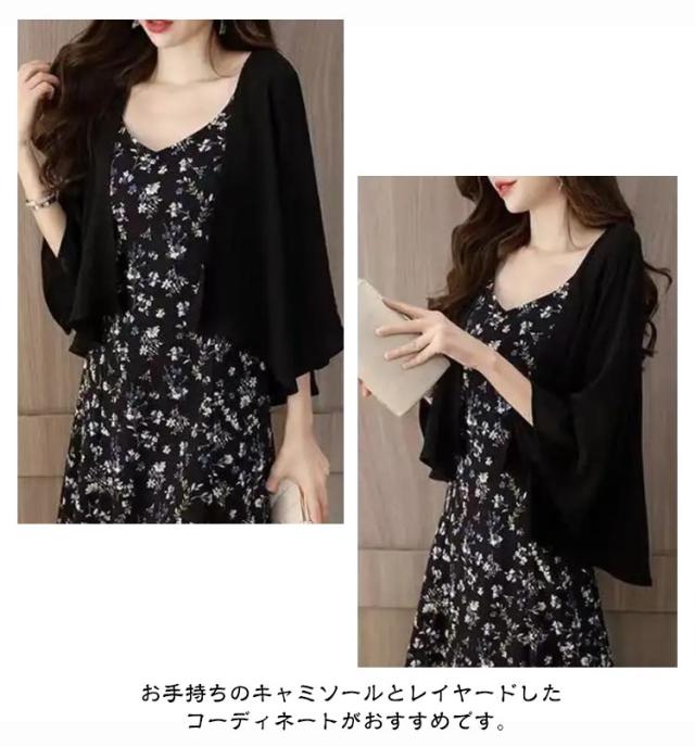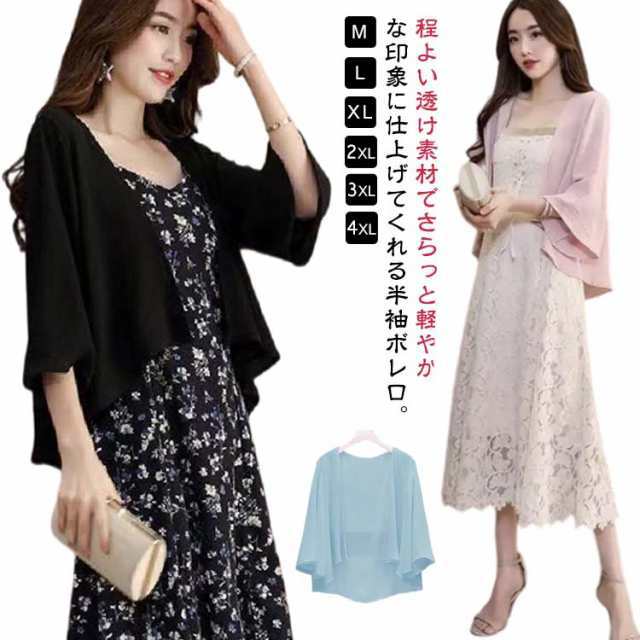 | 程よい透け素材でさらっと軽やかな印象に仕上げてくれる半袖ボレロ。【M-4XL】 Vネックのデザインになっており、すっきりとした首元を描きます。 七分袖で気になる二の腕もカバー、紫外線対策や室内の冷房対策にも使えます♪ お手持ちのキャミソールとレイヤードしたコーディネートがおすすめです。 | |