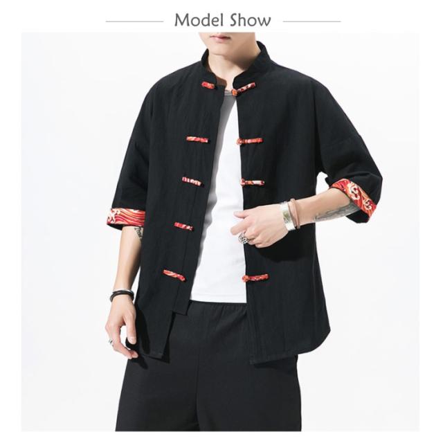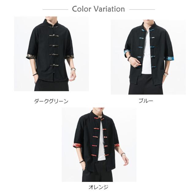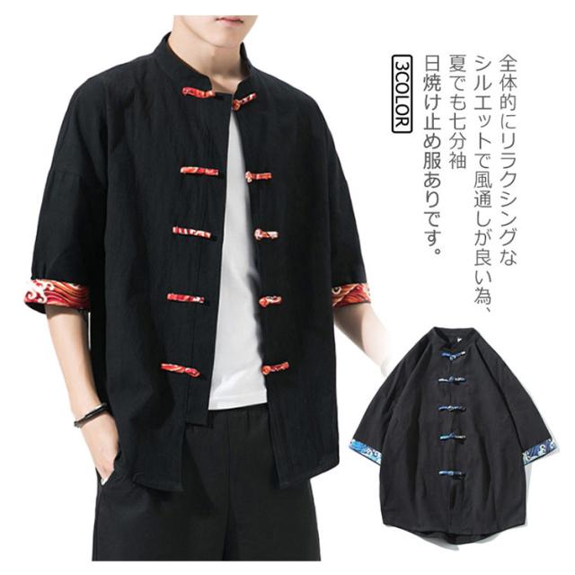 送料無料 シャツ メンズ 刺繍 和風 チャイナ風 チャイナ風ボタン メンズ カーディガン 和式パーカー 開襟シャツ 羽織 コート 夏服 和風 綿麻 カジュアル ゆったり 中華風 刺繍 リネン チャイナ 7分袖 夏 大きサイズ