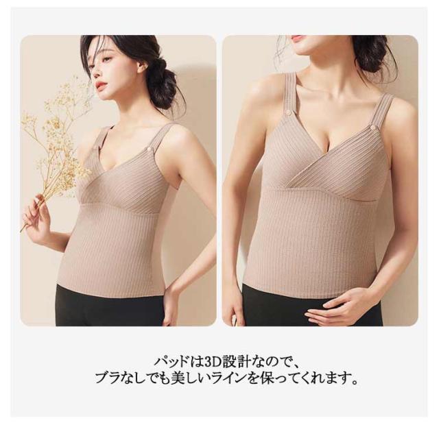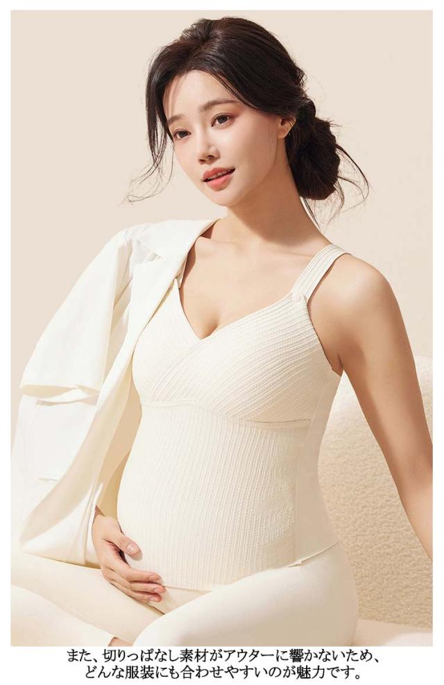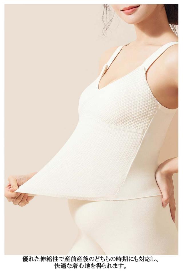 | 抗菌加工! あったか素材でふんわり柔らかい授乳キャミソール パッド一体型でお洗濯らくらく ふんわり柔らかい素材で作られた「あったか授乳キャミソール」で、秋冬の寒い季節の授乳も快適に! 内側にはウールとマルベリーシルクを含み、体の熱を逃がさず快適に保ちます。 パッド一体型で、着用時も洗濯時もパッドが外れない安心設計◎ パッドは3D設計なので、ブラなしでも美しいラインを保ってくれます。 これ一枚でブラジャーとキャミソールの役割を果たしてくれるため、授乳中のママにとって手放せないアイテムです。 ホックを外すだけで簡単に授乳ができ、お腹がすいた赤ちゃんを待たせません。 優れた伸縮性で産前産後のどちらの時期にも対応し、快適な着心地を得られます。 また、切りっぱなし素材がアウターに響かないため、どんな服装にも合わせやすいのが魅力です。 | |