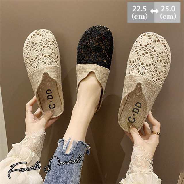 レディースサンダル ビーチサンダル 刺繍レース 履きやすい 可愛いサンダル 歩きやすい 疲れない スリッパ 22.5cm~25cm