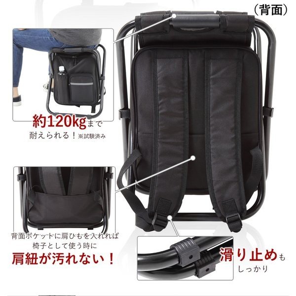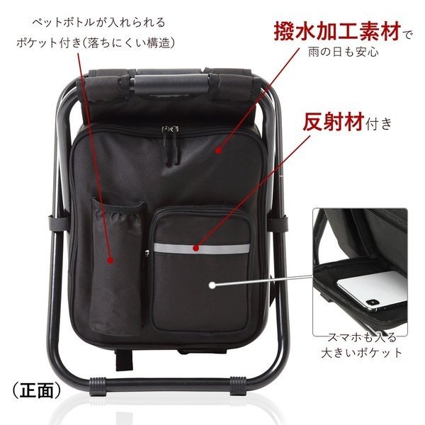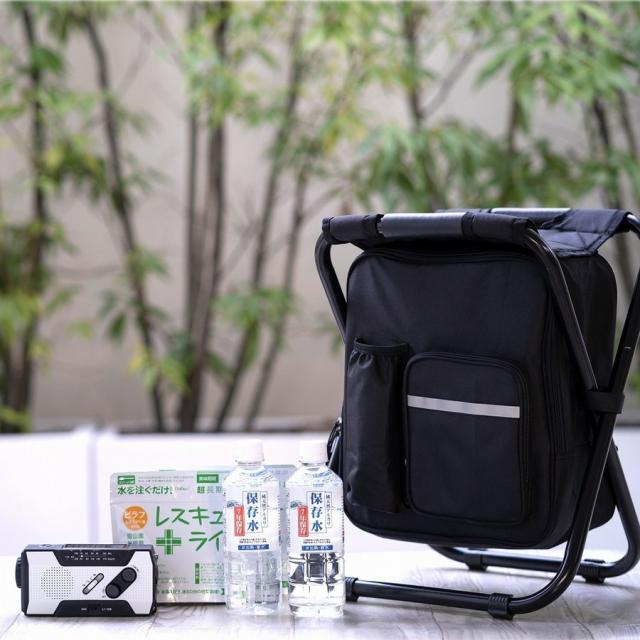 ★「リュック」として使用できるだけでなく、「イス」としても災害時の行列などでの無駄な体力消耗を防げる、便利なリュック。