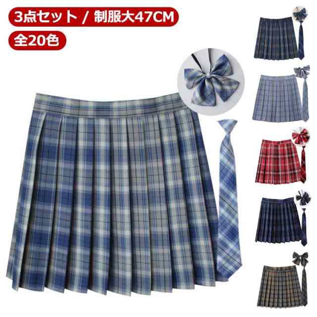 【3点セット】 【送料無料】 【全20色】 制服 スカート プリーツスカート 丈47cm スクールスカート チェック スクール 赤 タータンチェック スカート リボン ネクタイ ボウタイ リボンタイ 制服 セット 中学校 中学生 女子高校