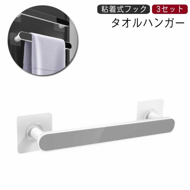 タオル掛け タオルハンガー 粘着式フック 3セット タオル干し キッチン トイレ 洗面所 おしゃれ 壁 ルームシューズ収納 壁かけ
