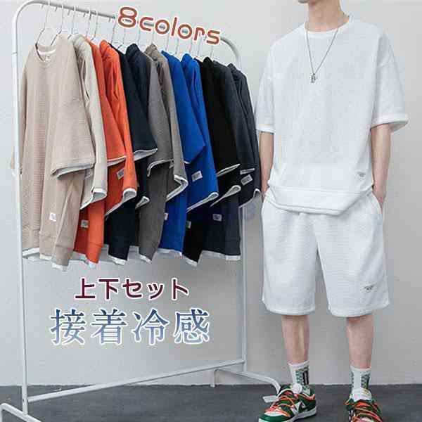 上下セット セットアップ Tシャツ ハーフパンツ 半袖 メンズ 夏 ルームウェア 部屋着 ゆったり 接着冷感 プレゼント 男性 ジャージ スウェット