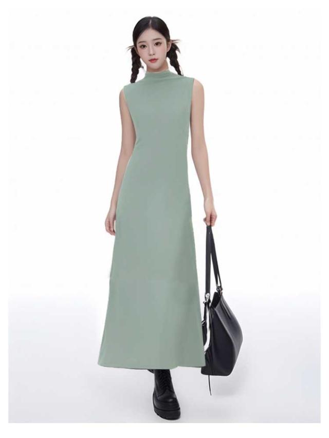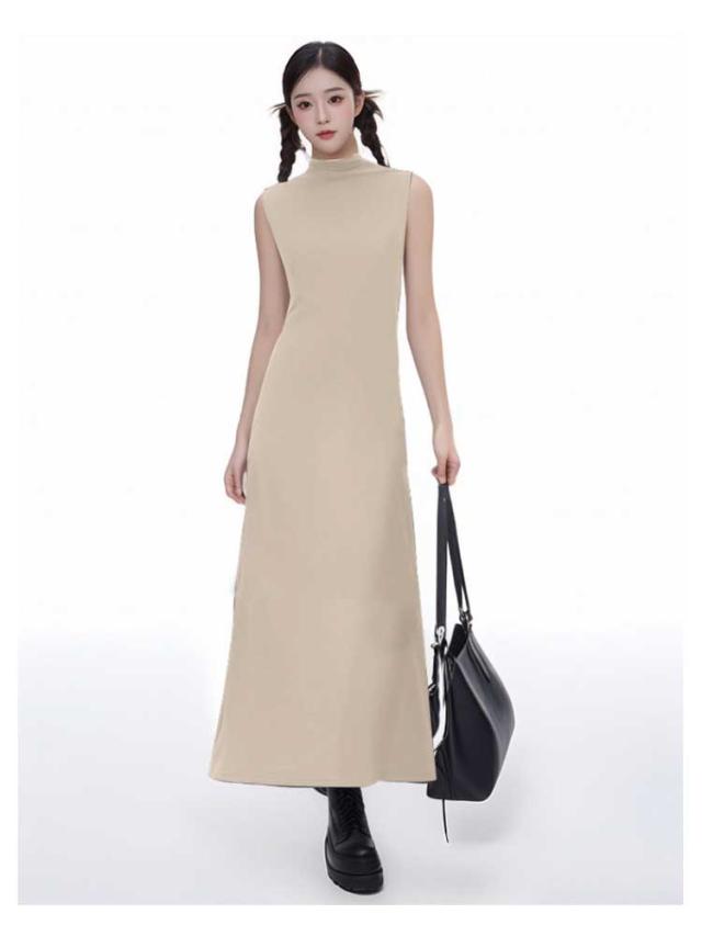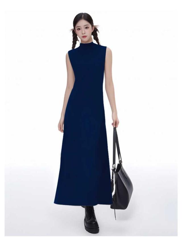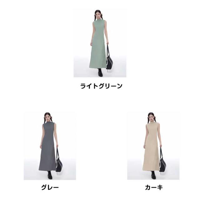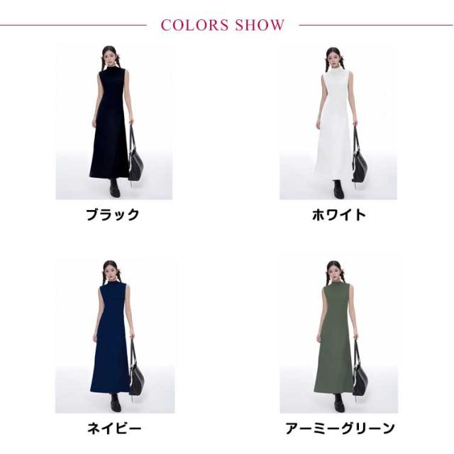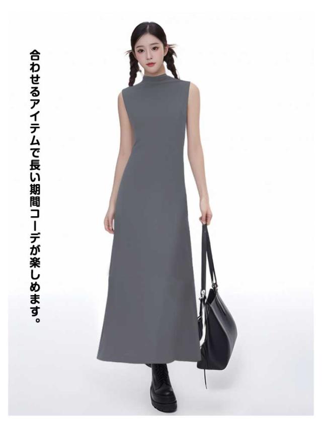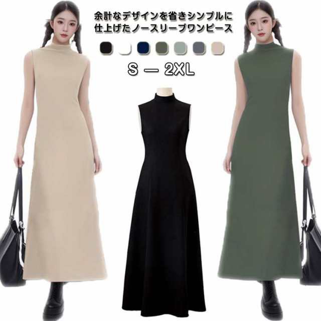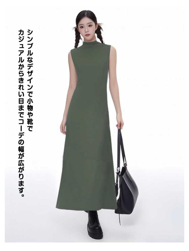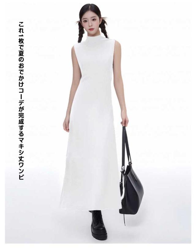 マキシワンピース ワンピース ノースリーブ モックネック レディース ロング丈 ロングワンピ きれいめ 通勤 オフィスカジュアル シンプル 着回し 卒業式 入学式 喪服 ママ 七五三 夏
