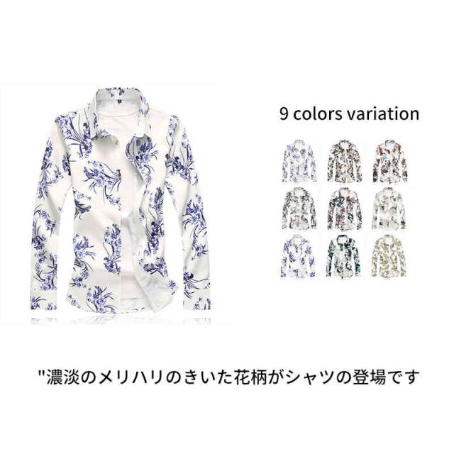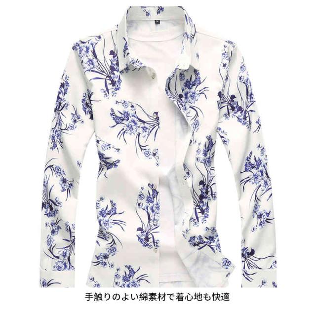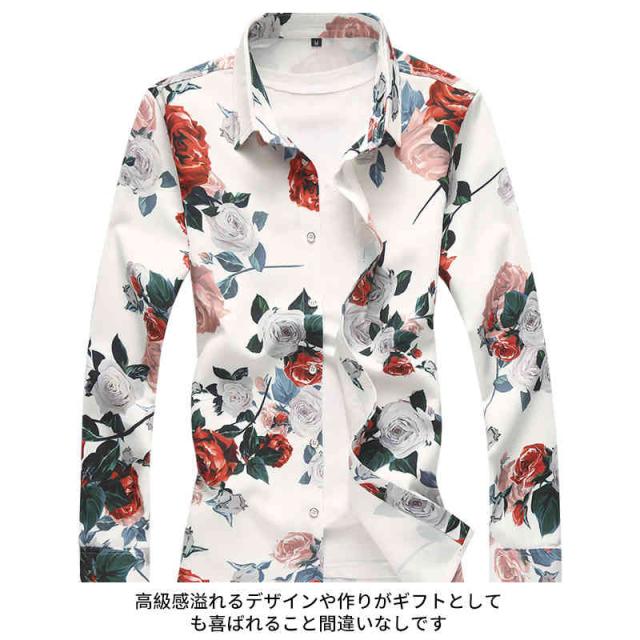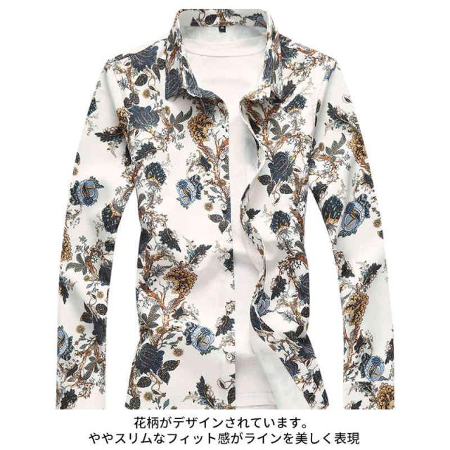 送料無料 シャツ メンズ 長袖シャツ メンズ おしゃれ アロハシャツ 長袖 シャツ 花柄シャツ 総柄シャツ カジュアル 柄シャツ 薄手 サマー オールシーズン キレイめ フォーマル ロールアップ袖 トップス ボタンシャツ 大きいサイズ 秋 夏