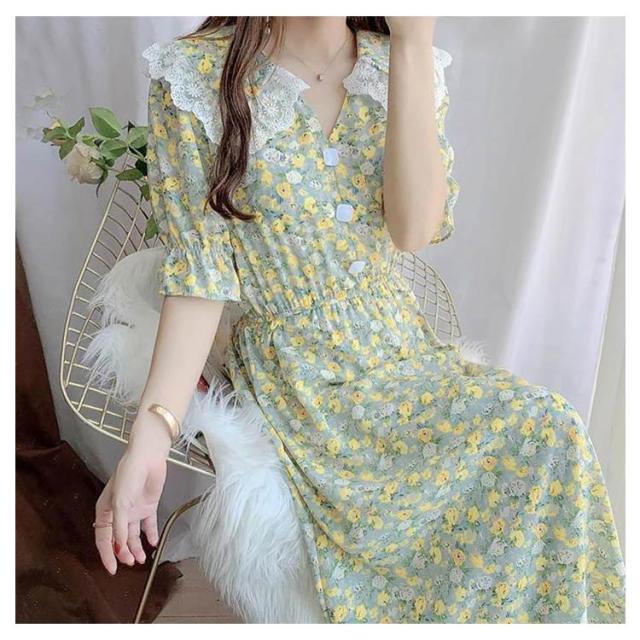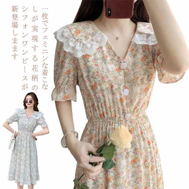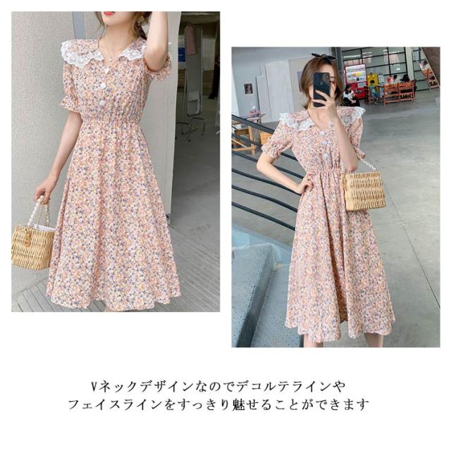 aライン レディース 通勤 フォーマル シフォンワンピース 長袖 フレアワンピース 花柄 膝丈ワンピ Vネック 体型カバー ロングワンピース 30代 二次会 無地 優雅 お洒落 20代 50代 40代 ワンピース