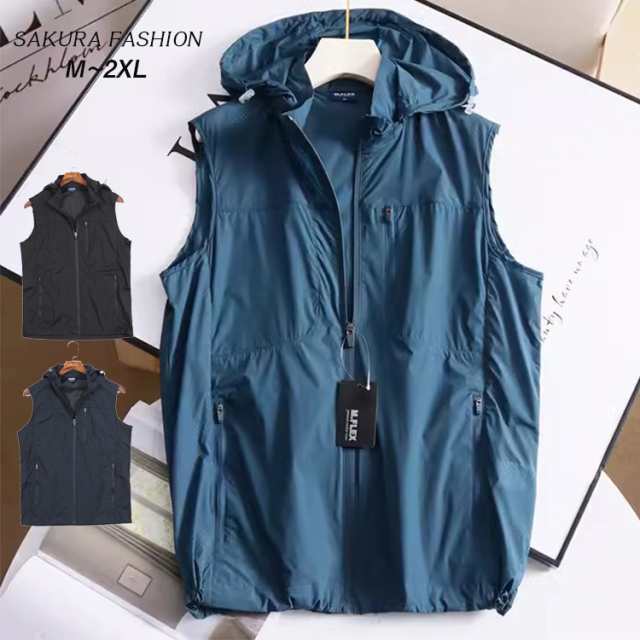 ベスト メンズ ノースリーブ 袖なし ナイロン ジャケット メッシュ ゴルフウエア 防風 通気 登山 フード脱着 スポーツベスト サイクルウエア トレーニング アウトドア キャンプ ダンス 釣り 通勤