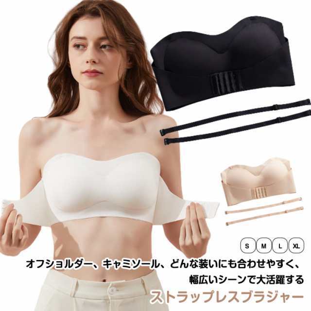 2点セット 滑り止めプラス ストラップレス ブラ ずれない ブラ 大きいサイズ インナー 下着 ブラジャー ブラ ブラジャー 紐なしブラ チューブトップ ブラ 薄手 脇肉スッキリ 垂れ防止 結婚式 ドレス ダンス 肩紐付き