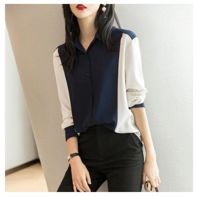 秋服 カジュアル フォーマル エレガント 長袖ブラウス レディース 事務服 バイカラー 無地 ブラウス 上品 大人可愛い 送料無料 シャツ オフィス 仕事 長袖シャツ OL リクルート 秋 服 シャツ 大きいサイズ