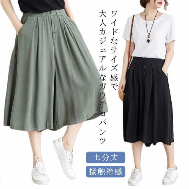 キュロットパンツ キュロットスカート パンツ ズボン 七分丈 夏 ハーフパンツ レディース キュロット スカーチョ ワイドパンツ ウエストゴム ひんやり 接触冷感 きれいめ 体型カバー 短パン ゆったり 春 ショートパンツ フレアパンツ 20代 30代 40代 50代 送料無料