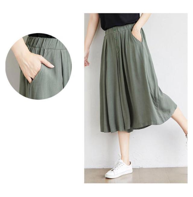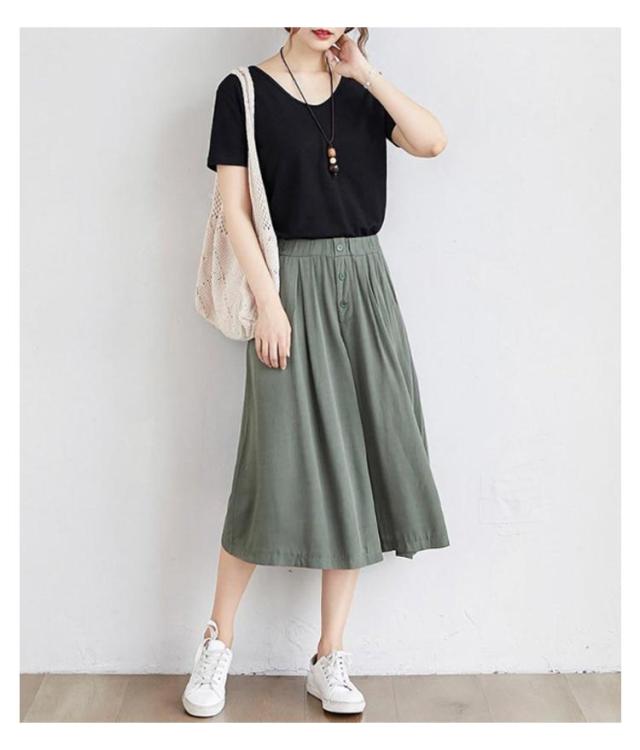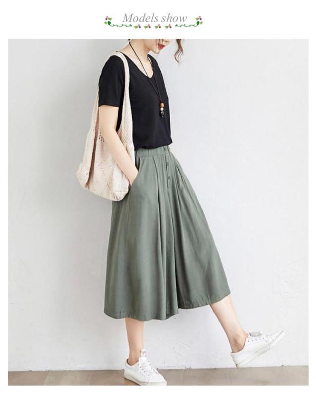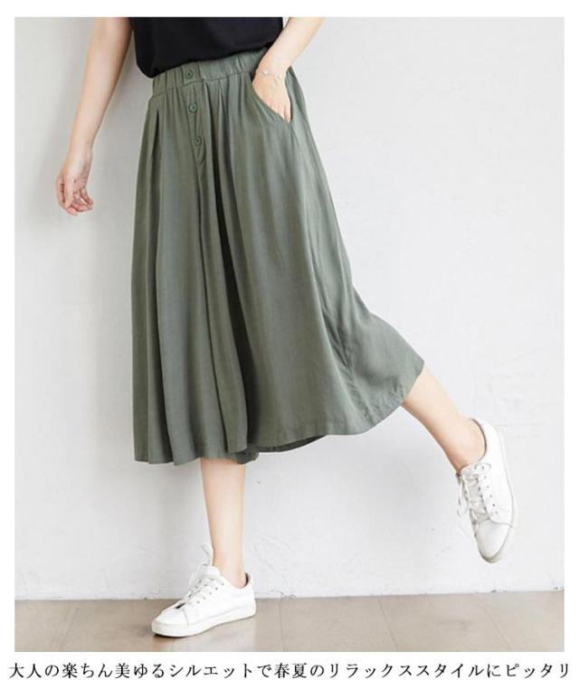 | ワイドなサイズ感で大人カジュアルなガウチョパンツ 薄めの素材を使い、穿く瞬間に爽やかで涼しげな感じになります ウェストがゴム付き、とってもカンタンに着脱できます 大人の楽ちん美ゆるシルエットで春夏のリラックススタイルにピッタリ 無地のシンプルなキュロットスカートは、色々なシーンで使える優秀なアイテムです。 | |