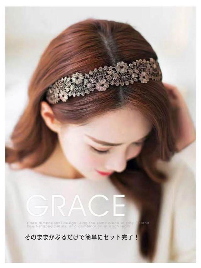 | 幅広レース柄カチューシャで、クラシック&ガーリーな雰囲気に! そのままかぶるだけで簡単にセット完了!立 体感をプラスして、おしゃれをもっと楽しもう!! | |