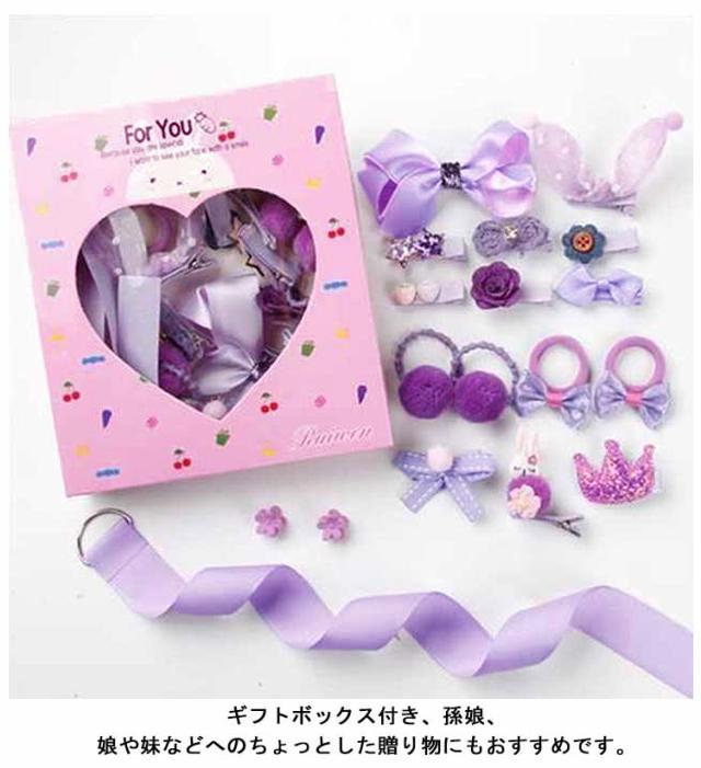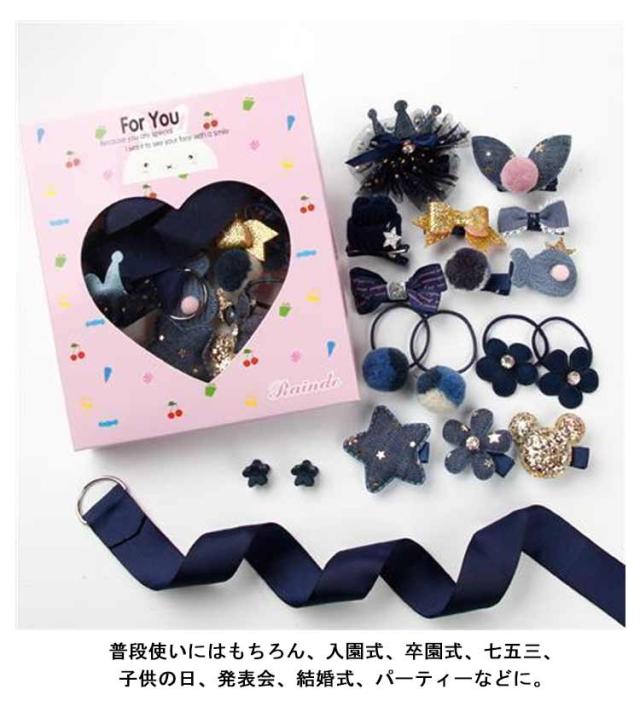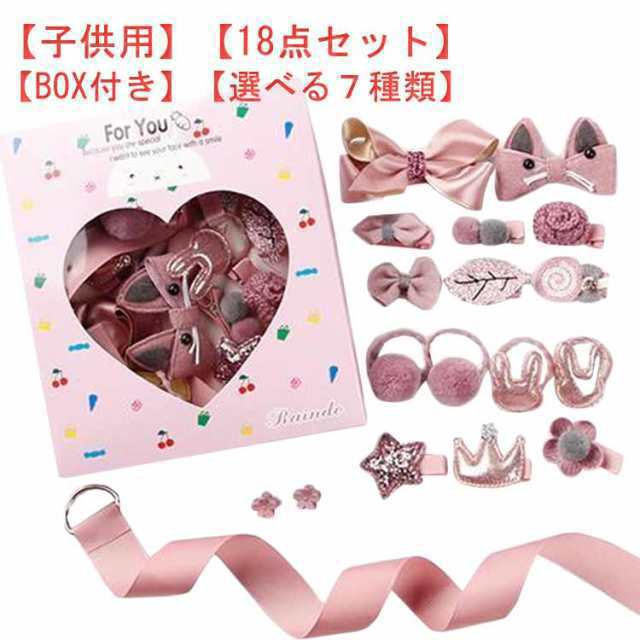 | 【子供用】【18点セット】【BOX付き】【選べる7種類】 お得な18点、この数(種類)なら2週間ほぼ日替りでつけたり、組み合わせて子供に可愛く飾ってあげられます。 付けるだけで可愛くおしゃれに!豊かなデザインや色で気分やお洋服に合わせて選ぶのも楽しいです。 ギフトボックス付き、孫娘、娘や妹などへのちょっとした贈り物にもおすすめです。 普段使いにはもちろん、入園式、卒園式、七五三、子供の日、発表会、結婚式、パーティーなどに。 | |