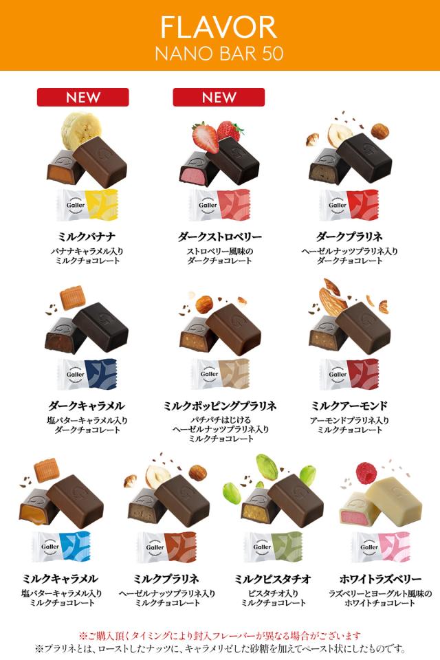 ナノバーホワイトラズベリー※新商品 ナノバーミルクバナナ※新商品 ナノバーミルクキャラメル ナノバーミルクプラリネ ナノバーミルクピスタチオ ナノバーミルクポッピングプラリネ ナノバーミルクアーモンド ナノバーダークプラリネ ナノバーダークキャラメル ナノバーダークストロベリー※新商品 各5個 |