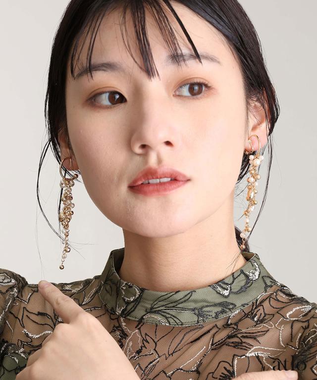 長めのイヤリングで存在感がありながらも、一つ一つのパーツは華奢なので、