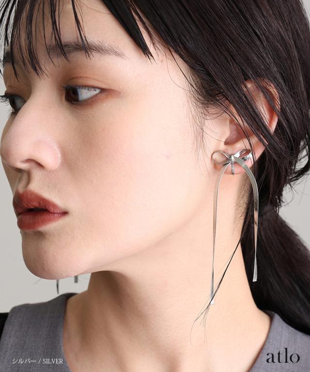 441251520 リボン スネークチェーン パーティードレス 大人かわいい ファッション イヤリング 大人可愛い おしゃれ レディース アクセサリー シルバー ゴールド 服装 新作 上品 パーティー