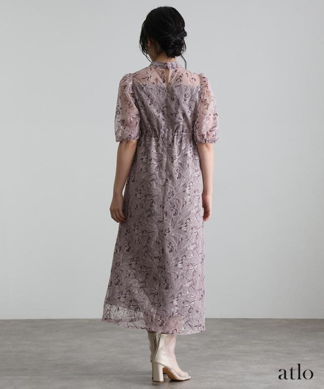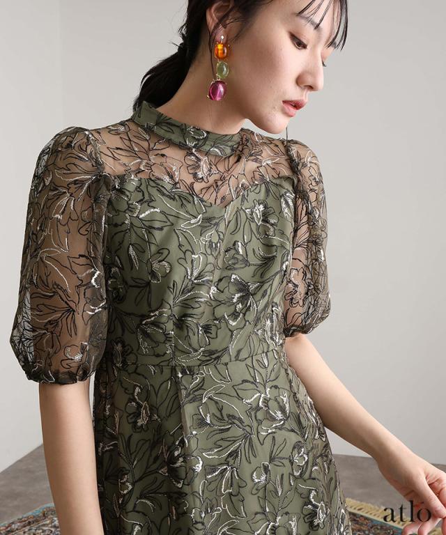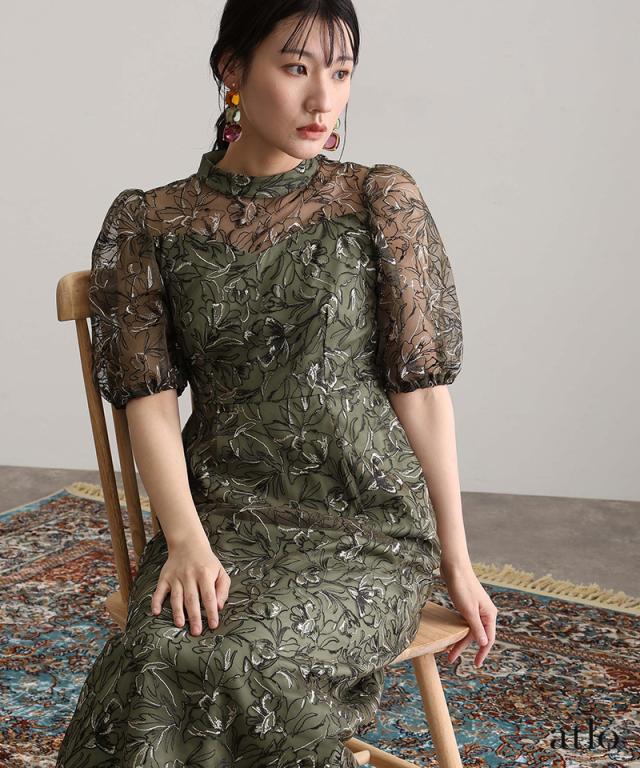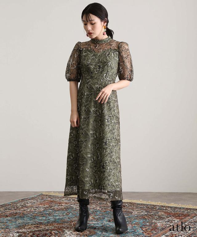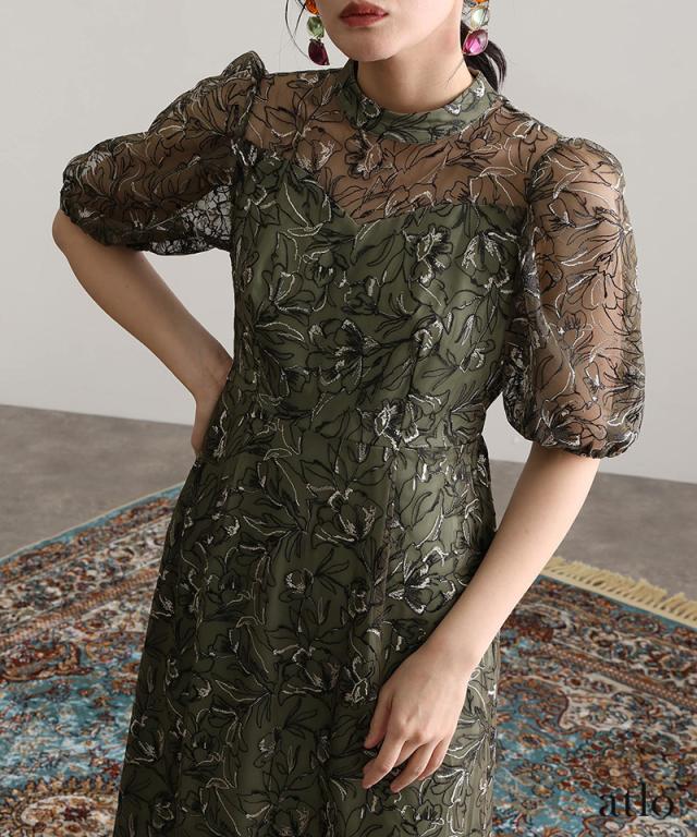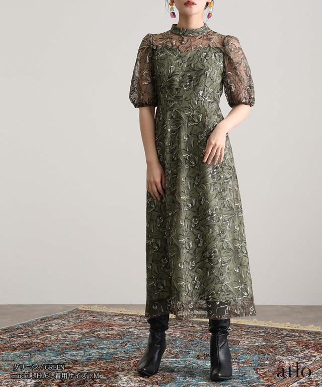 配色刺繍レースパフスリーブドレス【308251279】10代・20代・30代・40代・50代・ドレスワンピ・フォーマルワンピ・パンツドレス・服装・ワンピース・ドレスカジュアル・ブランド・七分袖・長袖・ロング・膝丈・薄手・厚手・無地・刺繍・脚長効果・伸縮性・キレイめ・着やせ・体型カバー・スタイルアップ・レース・リボン・ドレープ・小さいサイズ・3Lや4L・かっこいい・かわいい・即日発送・送料無料・結婚式・婚活・披露宴・顔合わせ・発表会・演奏会・二次会・同窓会・お呼ばれ・食事会・謝恩会・親族・七五三・お宮参り・冠婚葬祭・弔事・女子会・韓国・デート・入学式・卒業式・入園式・卒園式・ママ・ピアノ・マタニティー・セレモニー・セレブ・パーティー