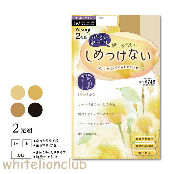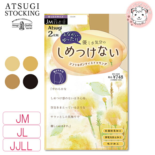 【アウトレット】アツギ 優しさ気分の しめつけない ゆったりサイズ ストッキング 2足組 補強トゥ 静電気防止 吸汗 JJLL | ゆったりストッキング PS68552P ATSUGI