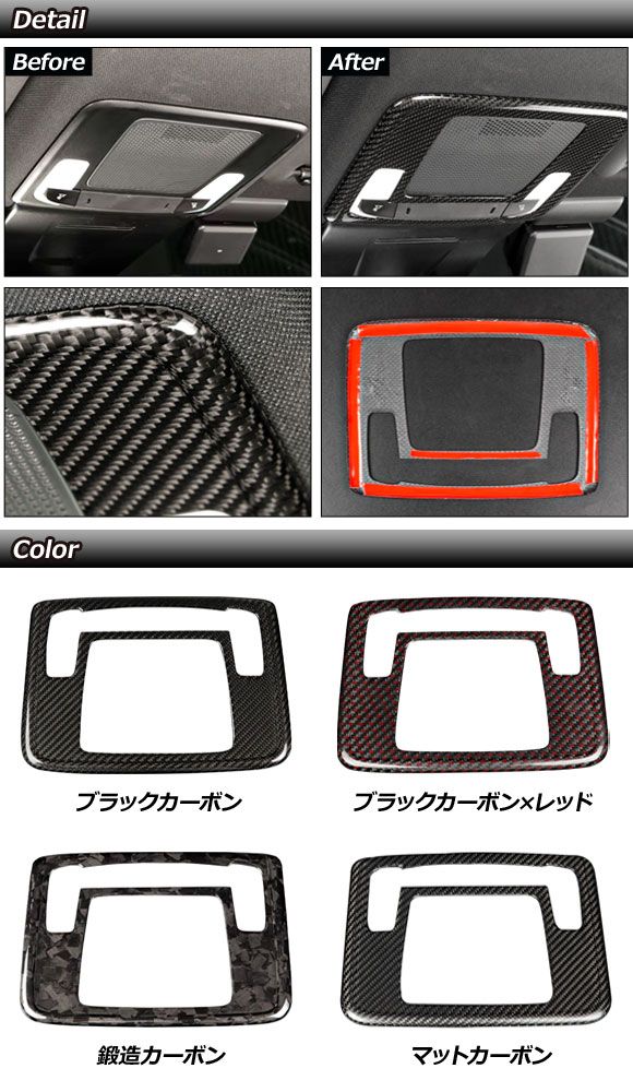 ルームランプガーニッシュ フロント用 ホンダ シビック FL5 タイプR 2022年09月〜 ブラックカーボン×レッド カーボンファイバー製 AP-IT3963-BKCRD