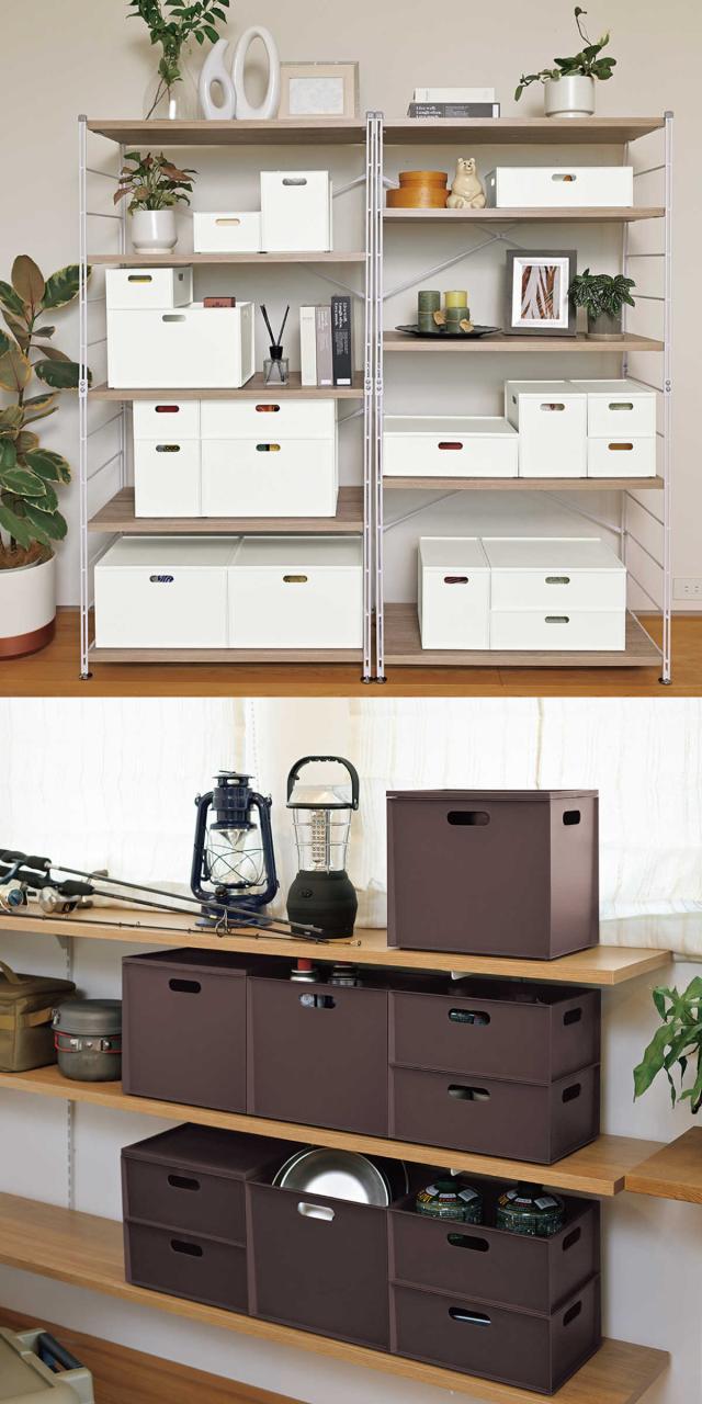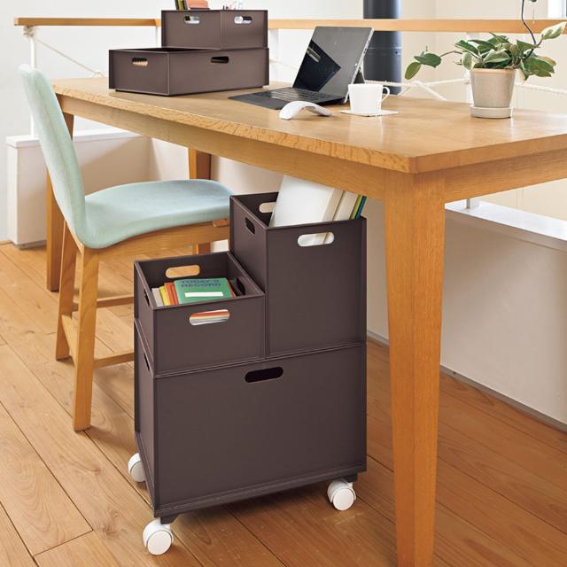 直方体デザインは洗練された印象を与えます。清潔感のあるホワイト、空間を引き締めるダークブラウンの2色展開です。サイズ違いも自在にレイアウトできるため、必要に応じて買い足しやすいです。