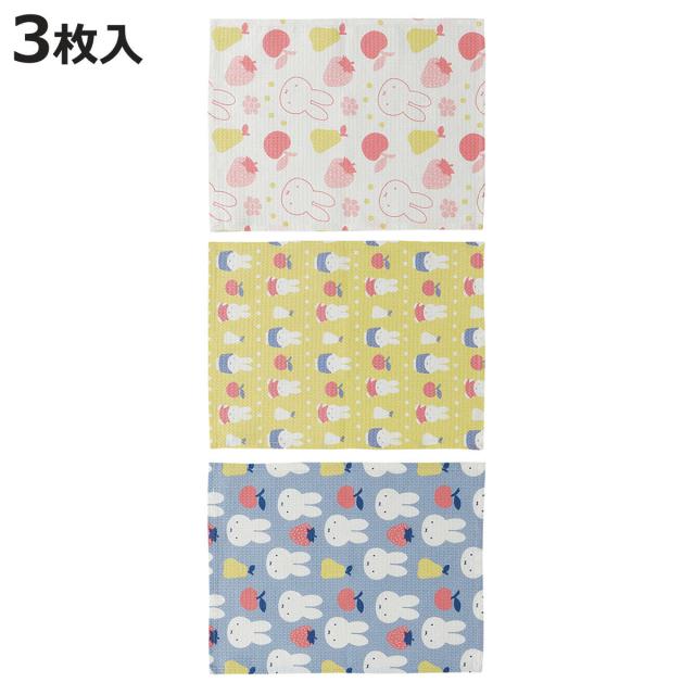 布巾 ワッフル生地 ふきん 3枚入り ミッフィー ( フキン ワッフル 生地 コットン 綿100% 食器拭き 台拭き キッチンタオル ワッフルクロス 吸水性 シンク周り キッチン雑貨 キッチングッズ おしぼり 食卓用 キャラクター )