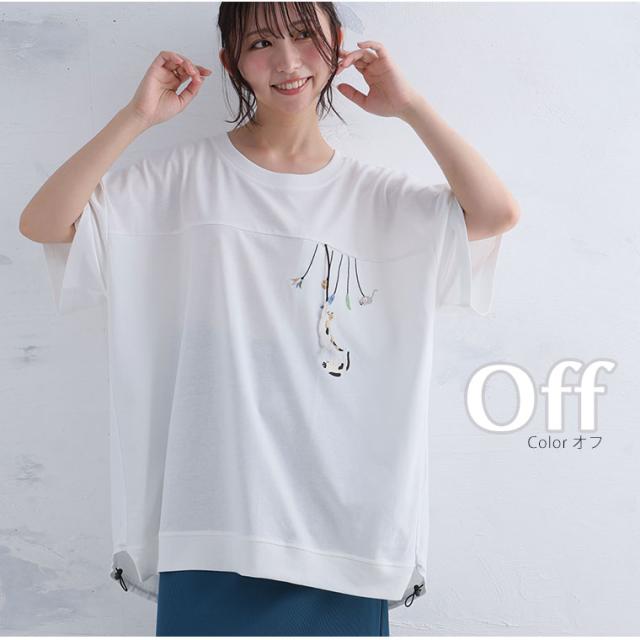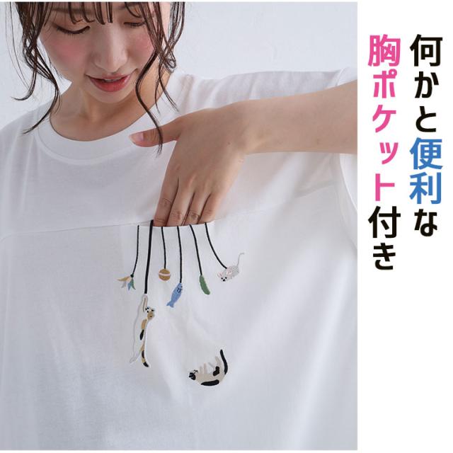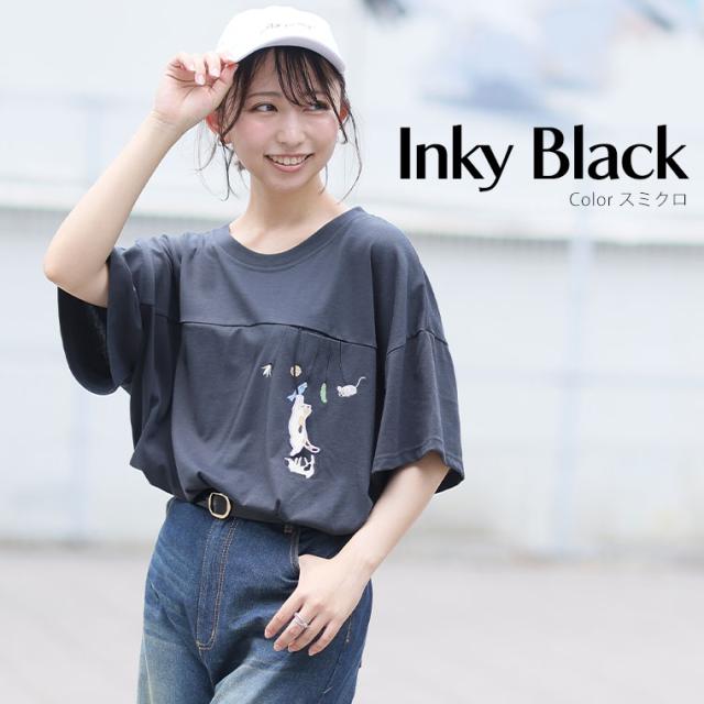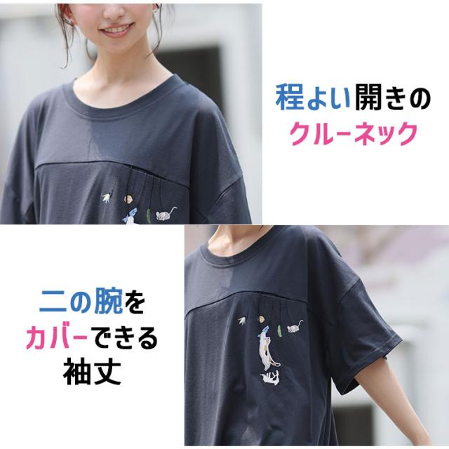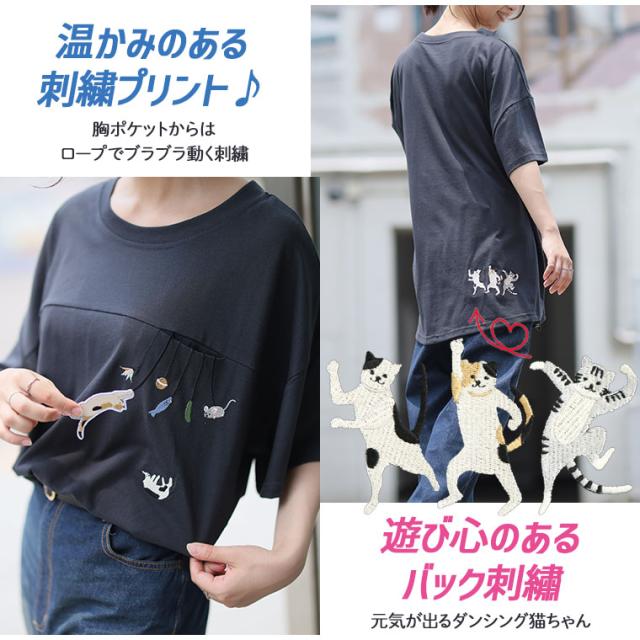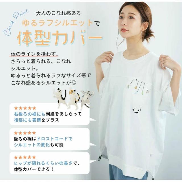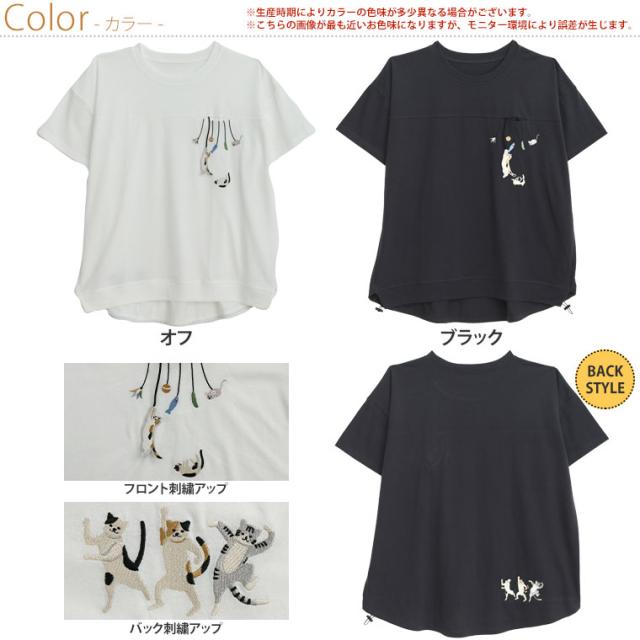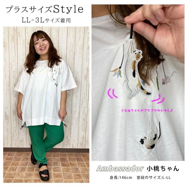 新作 大きいサイズ レディース トップス | ぶらぶら 猫刺繍 Tシャツ [861833] LL 3L 4L 5L