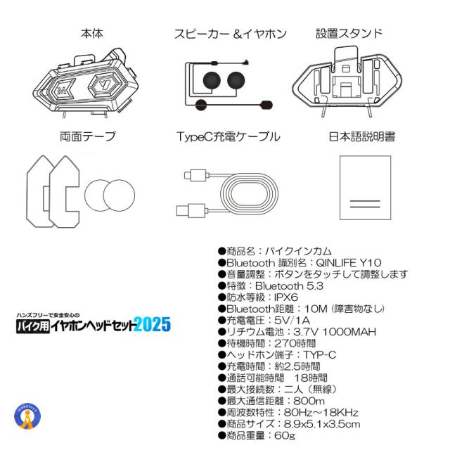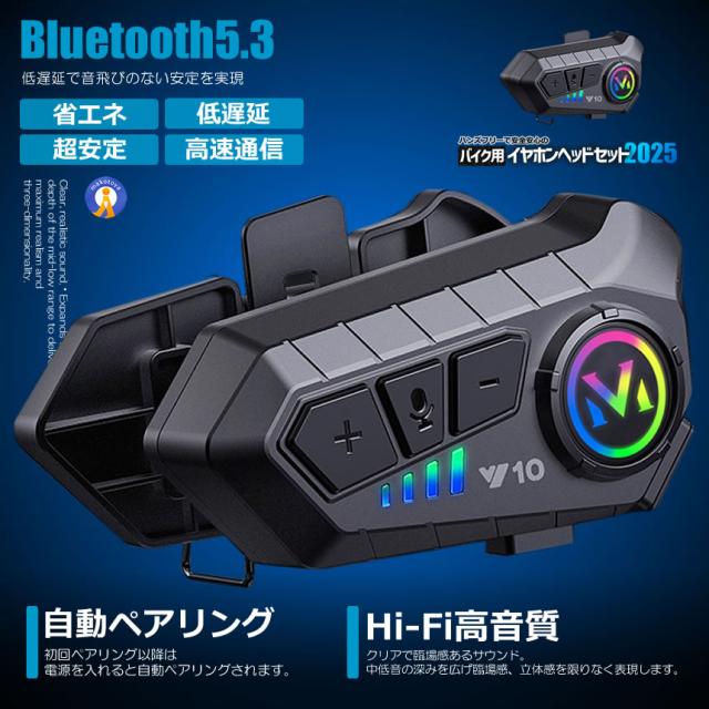 バイク ヘッドセット 2個セット 高音質 イヤホン Bluetooth5.3搭載 ヘルメット装着 ハンズフリー スマホ 音楽 電話 通話 Hi-Fi高音質 IPX67 防水 防塵 Y10-SOFT x-0116-52a