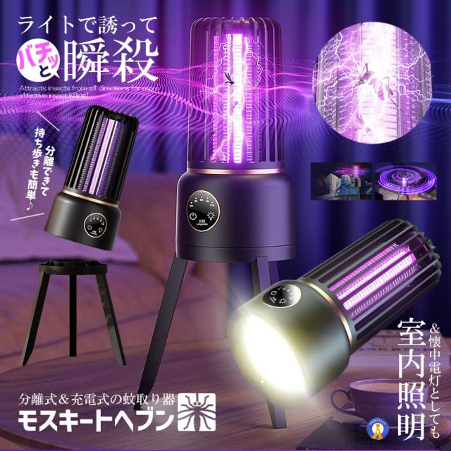 電撃殺虫器 蚊取り器 懐中電灯 USB充電式 360度 懐中電灯付き LEDライト アウトドア 屋外 室内 UV光源誘引式 UVライト 照明 蚊除け 蚊よけ MF003 s-km2503-47a
