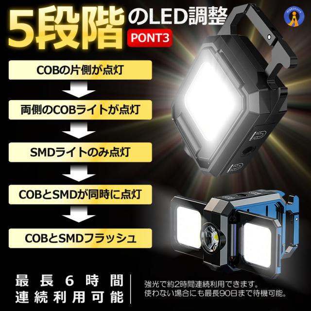 5個セット 閃光 LEDランタン 開閉式 90度 折りたたみ 懐中電灯 多機能 照明 マグネット 5段階のLED調整 TIKRAI s-km2502-42a