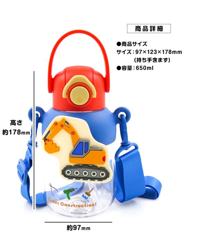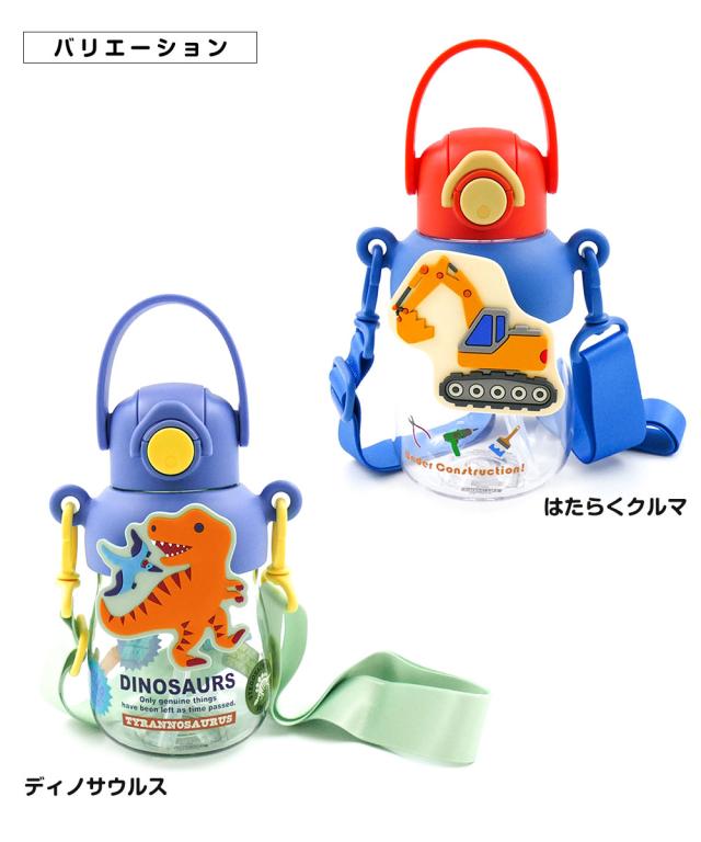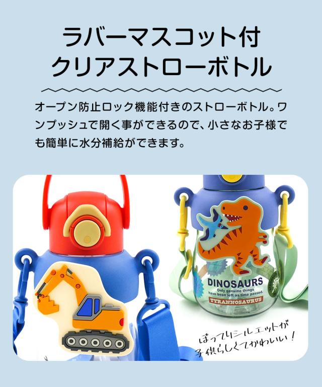 \今だけ10%OFF/ 水筒 キッズ 650ml ワンプッシュ クリアボトル ラバーマスコット付き ストロー飲み ショルダーストラップ 子供 男の子 女の子 男子 女子 保育園 幼稚園 遠足 常温 幼児 こども キャラクター 恐竜 車 PRMC7ST