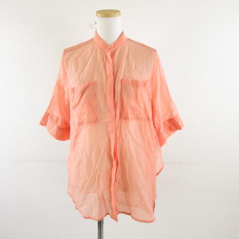 【中古】アメリカンホリック AMERICAN HOLIC シアーバックフレアWポケットシャツ チュニック 七分袖 ピンク M
