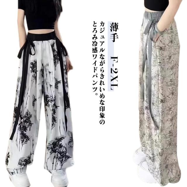 ワイドパンツ レディース 夏 冷感 ロングパンツ きれいめ ガウチョパンツ ワイド 冷感素材 パンツ 薄手 ゆったり ひんやり カジュアル 普段着 無地 リラックスパンツ シンプル 夏服 きれいめ 大きいサイズ パジャマ 部屋着 ルームウェア 涼しい 体型カバー ボトムス パンツ