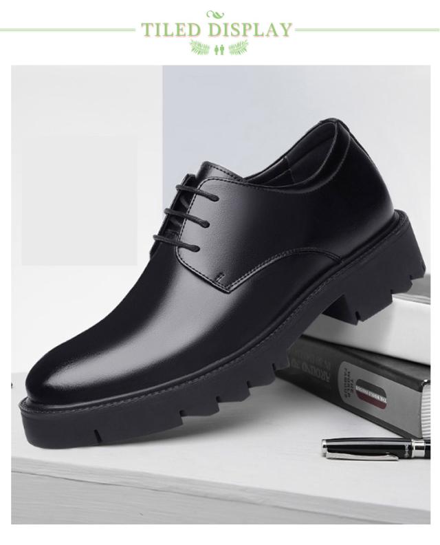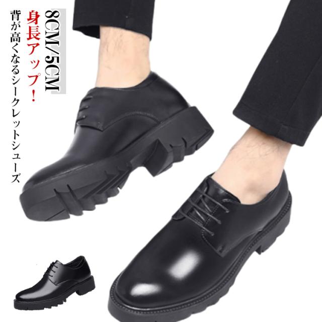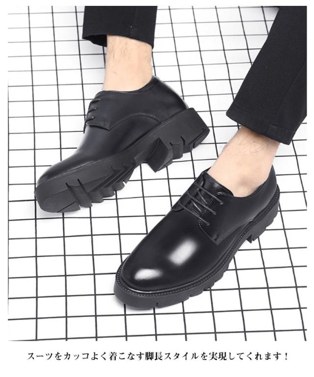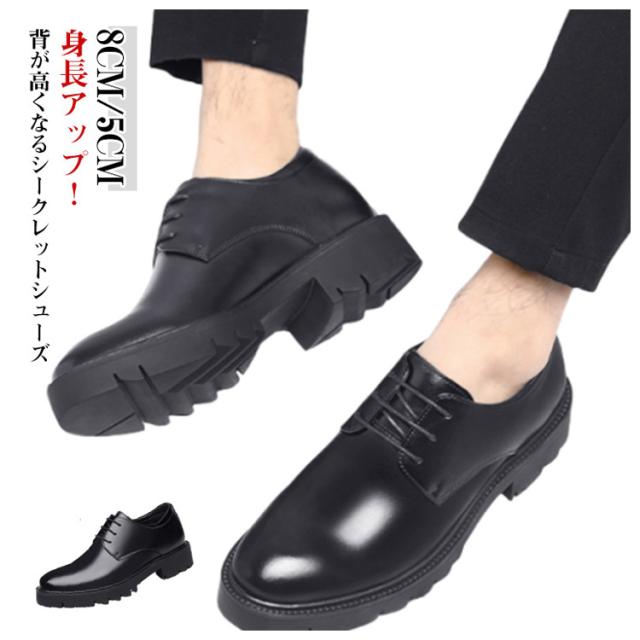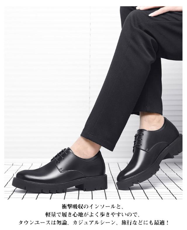 8cm身長アップ 背が高くなるシークレット シークレットシューズ 革靴 厚底 身長アップ 8cm レースアップ ビジネスシューズ 紳士靴 紐靴 超軽量 靴 シューズ レザーシューズ 結婚式 ドレスシューズ カジュアルシューズ 歩きやすい 防滑 滑りにくい 黒 ブラック 23.5-27cm