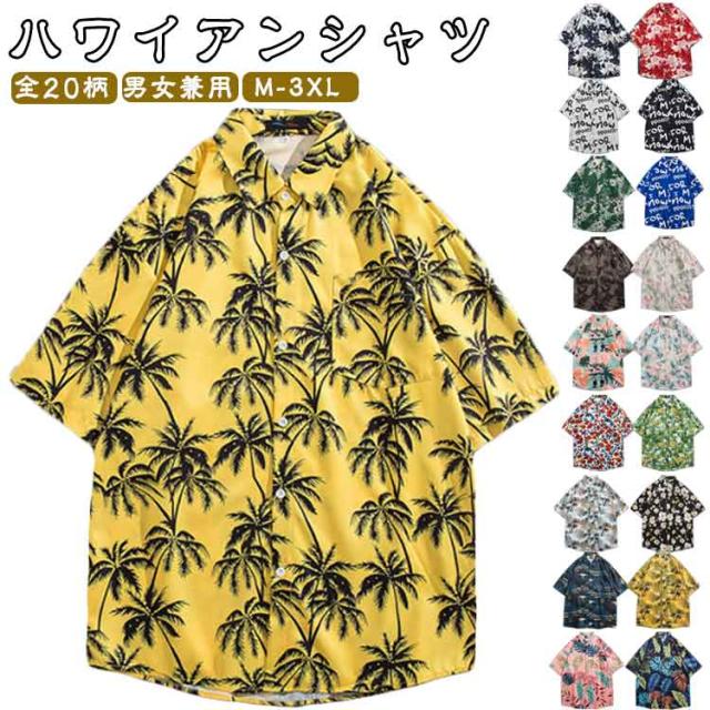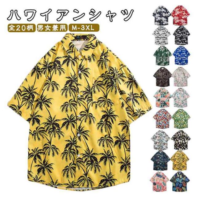 全20柄 アロハシャツ メンズ レディース ハワイアンシャツ 半袖シャツ 総柄シャツ 薄手 開襟シャツ トップス カジュアルシャツ おしゃれ ペアルック 男女兼用 夏服 サマー M L XL 2XL 3XL