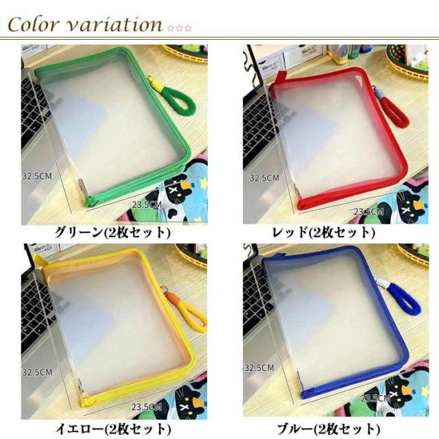 2枚セット ジッパー式ファイル袋 A4 ファスナー ファイルケース 連絡袋 ジッパーファイル ファスナー付きファイル 可愛い ファスナー付き袋 防水 ドキュメントファイル 機能的 クリアホルダー小物収納 大開口 学生 収納 便利