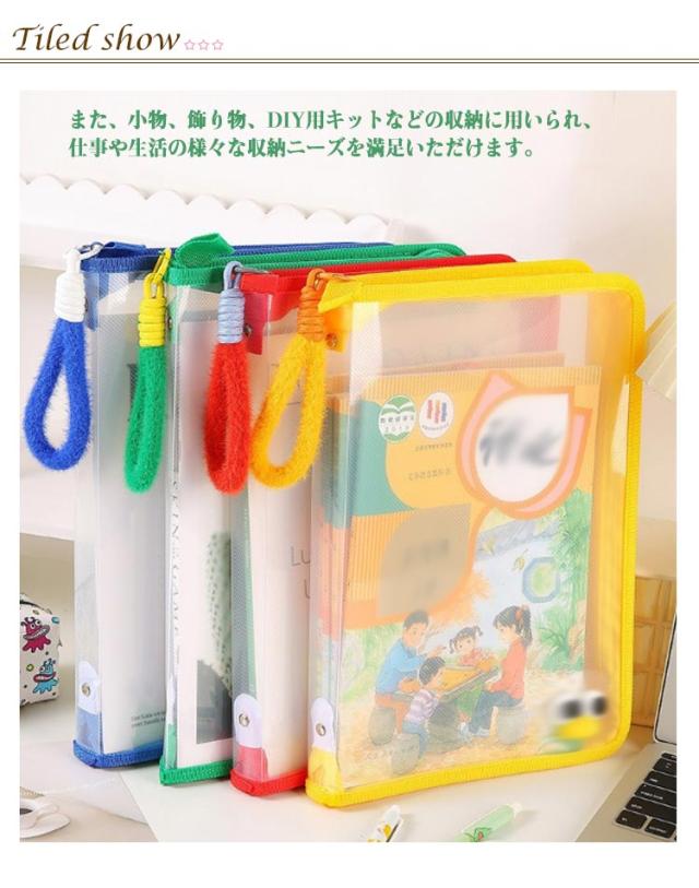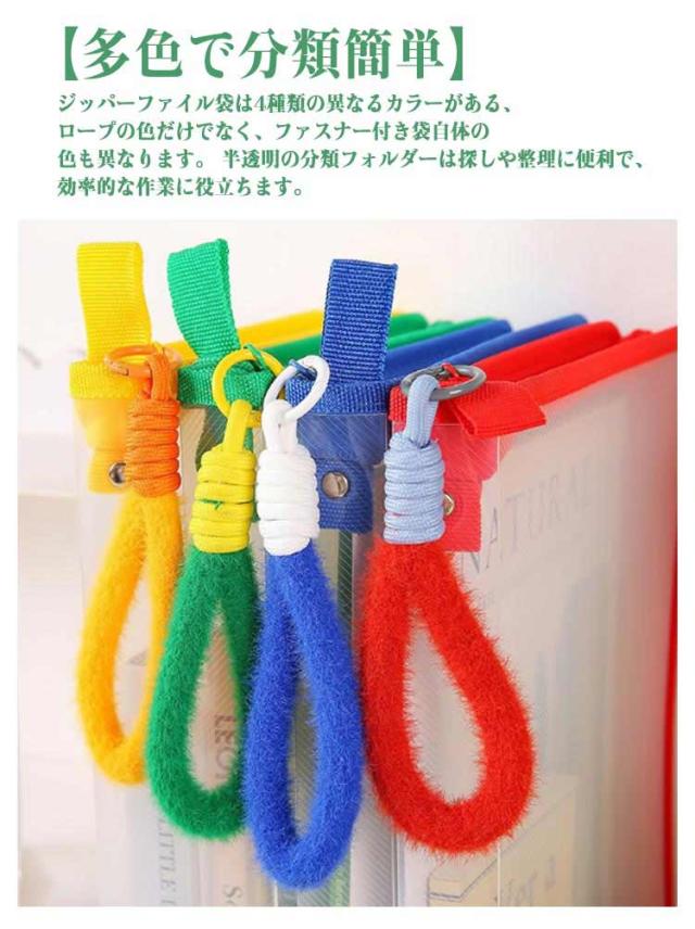 | 【多色で分類簡単】ジッパーファイル袋は4種類の異なるカラーがある、ロープの色だけでなく、ファスナー付き袋自体の色も異なります。 半透明の分類フォルダーは探しや整理に便利で、効率的な作業に役立ちます。 【ジッパー式 ドキュメントファイル】ファスナー付きファイルのファスナーが滑らかで使いやすいです。滑らかな金属のファスナーを使って、密封性が良く、重要なファイルの紛失を有効的に防止します。グリッド線の設計が、最大程度は物品のスライドを避けることができます。バンドのデザインで、ファイル袋がどこにも掛けられます。 【優れた品質のファスナーケース】丈夫な厚みのあるPP素材で作られて、耐久性に優れて、防水防湿、汚れを防ぐ機能がある。折り曲げても、丸めても傷まなくて、破れにくくて、手で触ったら重厚感を感じられた柔軟性の高いホルダーです。無毒無臭、健康で環境にやさしい、優れたオフィスドキュメントファイルです。 【多用途 贈り物に最適】用途によって選択できます。これらのファスナー ファイルケースは常にファイルや本、領収書、文房具、オフィス用品などの収納に使います。また、小物、飾り物、DIY用キットなどの収納に用いられ、仕事や生活の様々な収納ニーズを満足いただけます。 | |